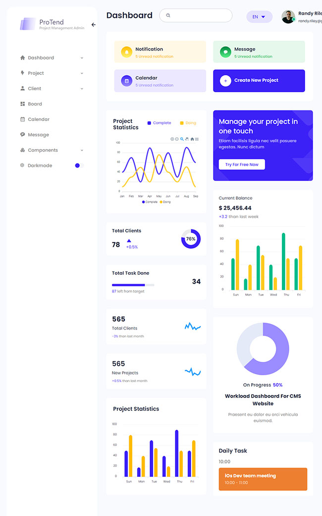 项目管理后台仪表板HTML5模板
