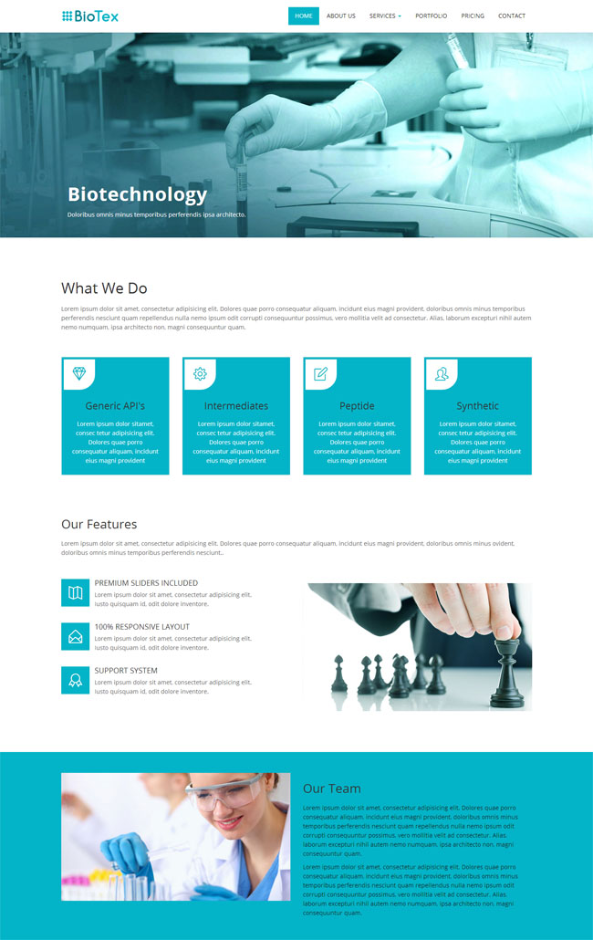 蓝色化学生物研究网站模板