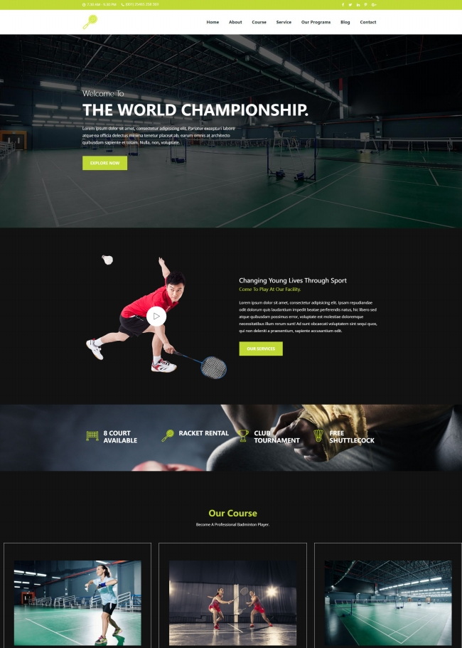 羽毛球运动培训机构网站模板