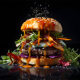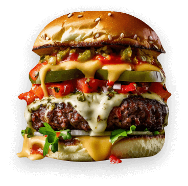 Sizzle Snap BurgersBread, 120g Meet, Cheese, BBQ Sauce, Bacon, Lettuce, Pinkles and Red Onion.